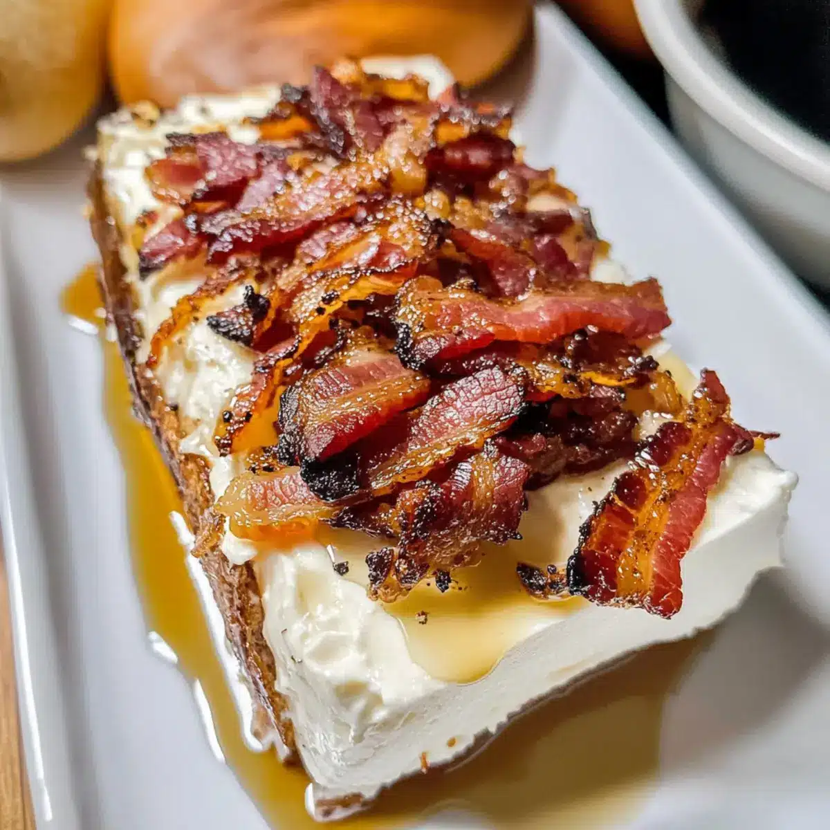 - Nehmt den Ziegenkäse Log und platziert ihn auf einer Servierplatte. Drückt die abgekühlten Baconscheiben vorsichtig in den Käse. Beträufelt das Ganze abschließend mit Ahornsirup oder Honig für zusätzlichen Geschmack. Serviert den Bacon Ziegenkäse Vorspeisen Log zusammen mit den frisch gebackenen Crostini.