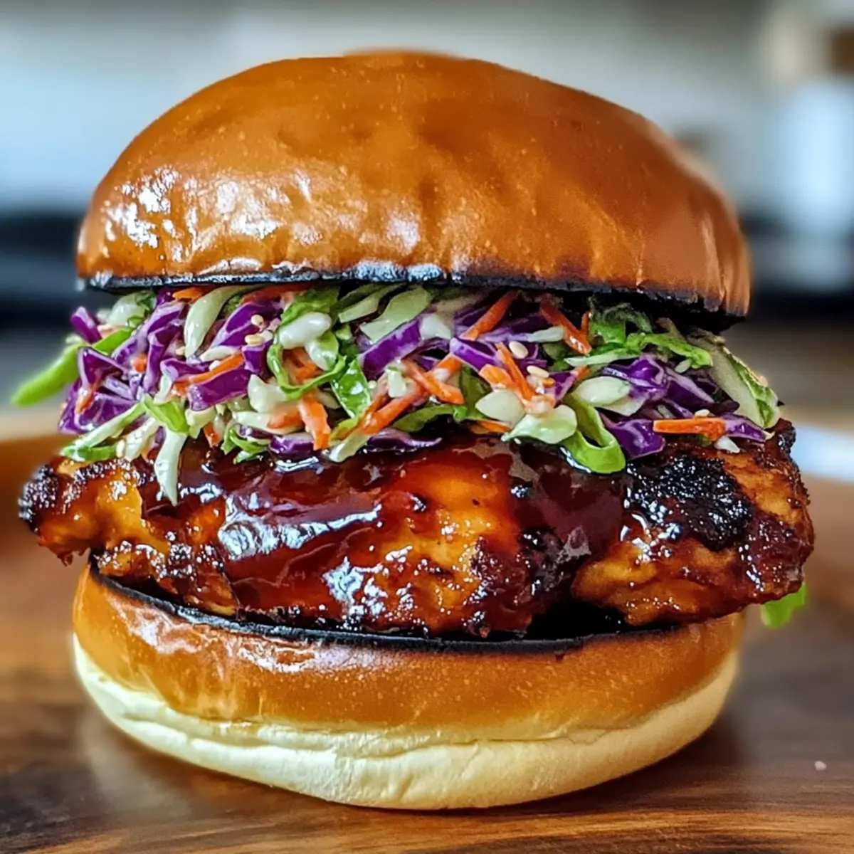 Bereiten Sie sich vor, dieses köstliche BBQ-Hühnchen-Sandwich mit Krautsalat zu zaubern – ein Rezept, das einfach Freude bereitet!