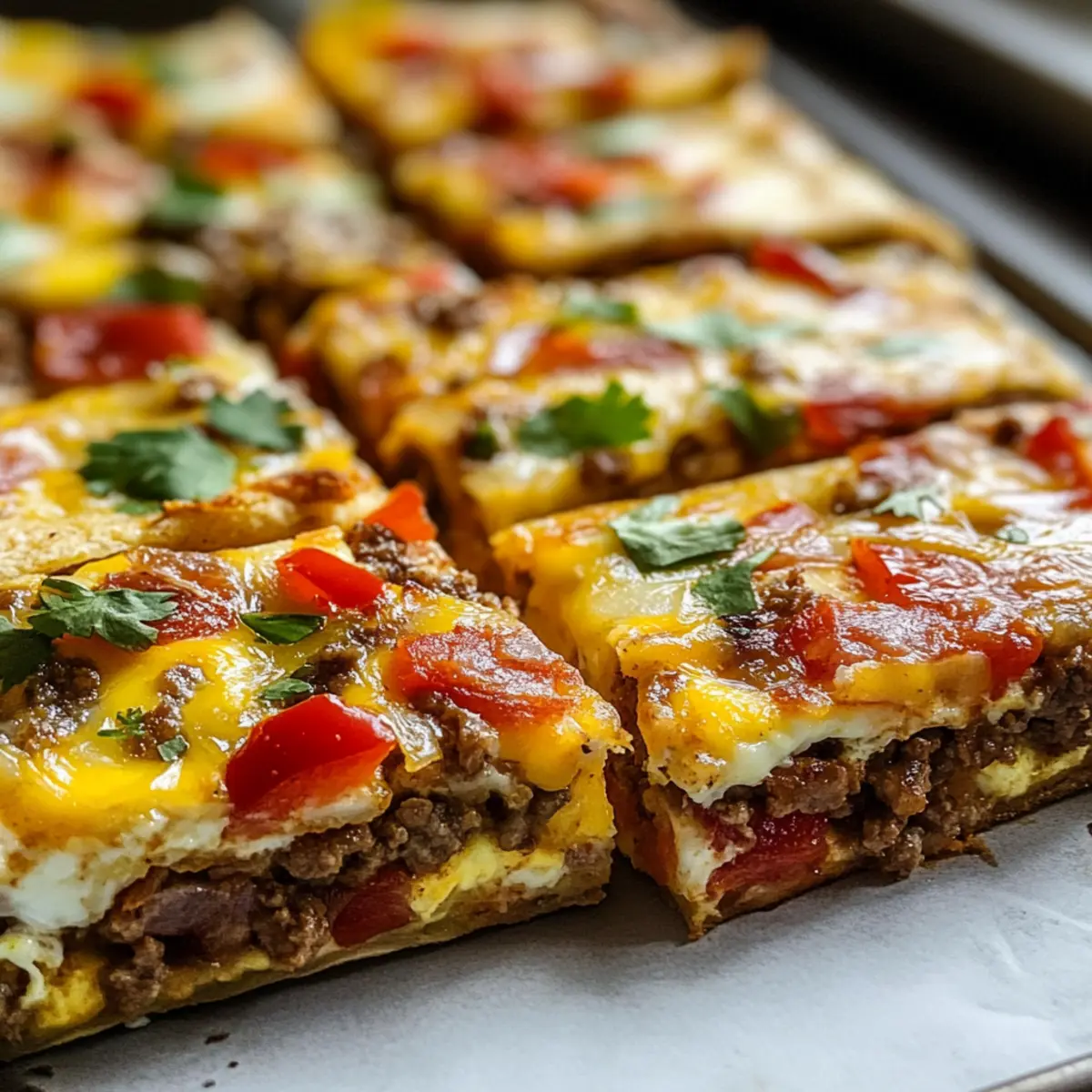 - Würzige Kick: Fügen Sie Nacho-Käse oder Jalapeños hinzu, um die Schärfe zu erhöhen. Diese Zutat gibt den Quadraten einen aufregenden Twist, der Liebhaber der scharfen Küche begeistert.