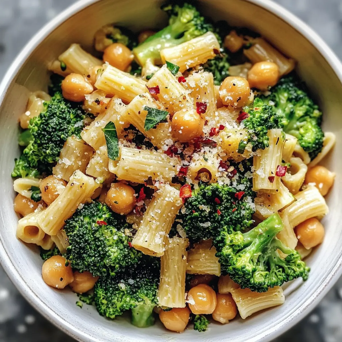 Genieße die Zubereitung und der einzigartigen Geschmack deiner Brokkoli Kichererbsen Pasta mit Knoblauch Olivenöl!
