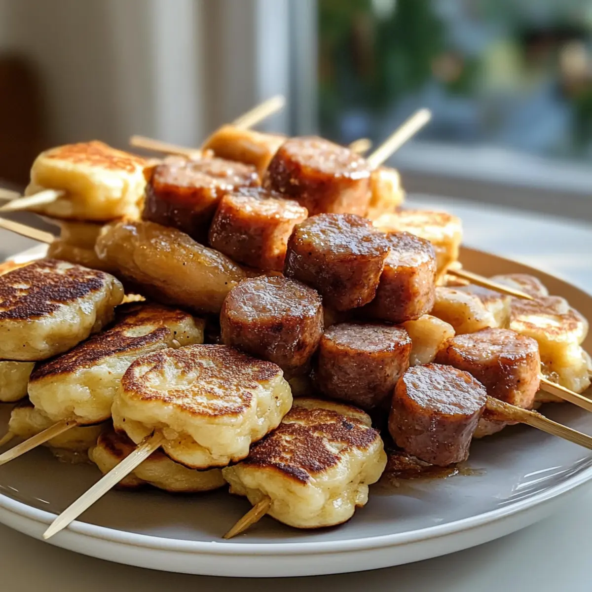 Pfannkuchen & Rinderwürstchen Spieße für Frühstück Spaß