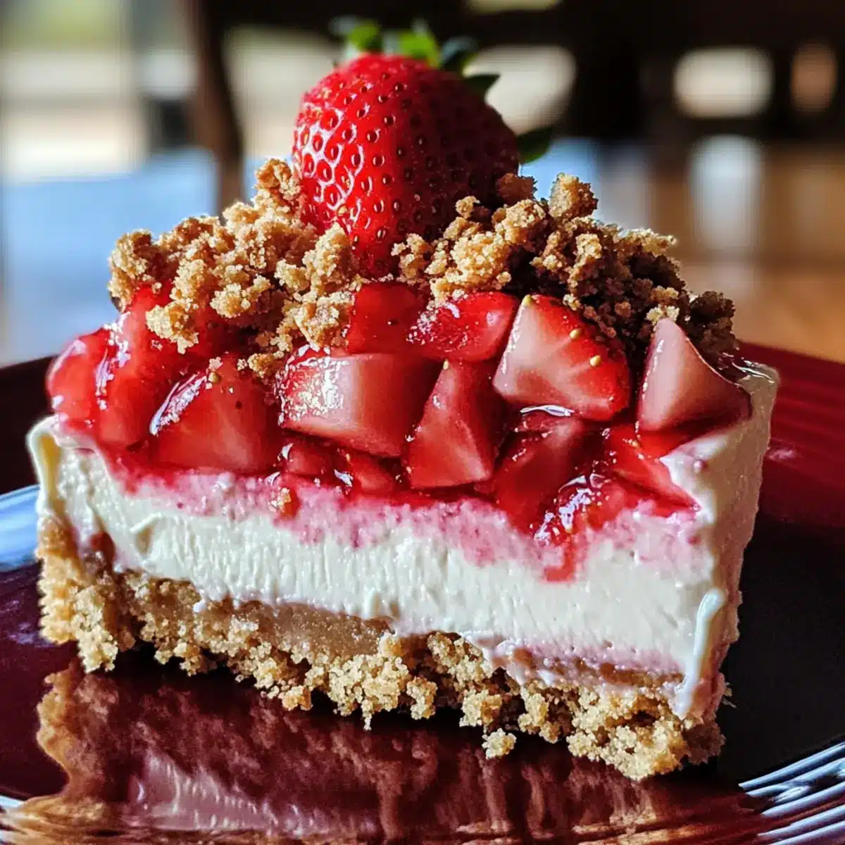 Einfache Erdbeer-Crunch-Käsekuchen für heiße Tage