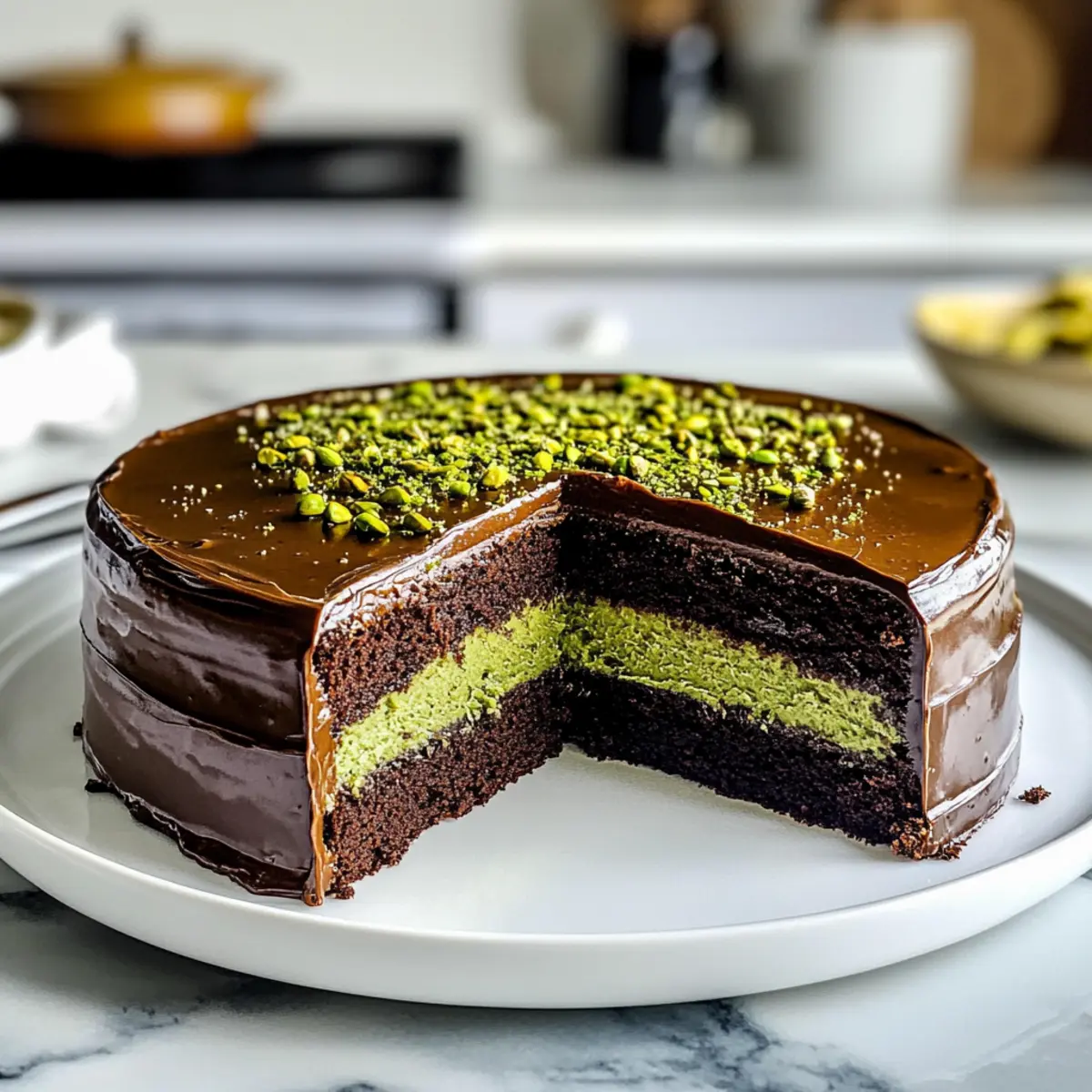 Luxuriöser Dubai Schokoladenkuchen mit Pistazien