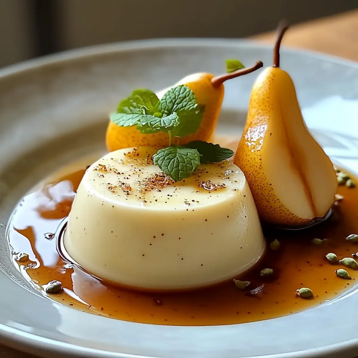 Kardamom Panna Cotta mit pochierten Birnen