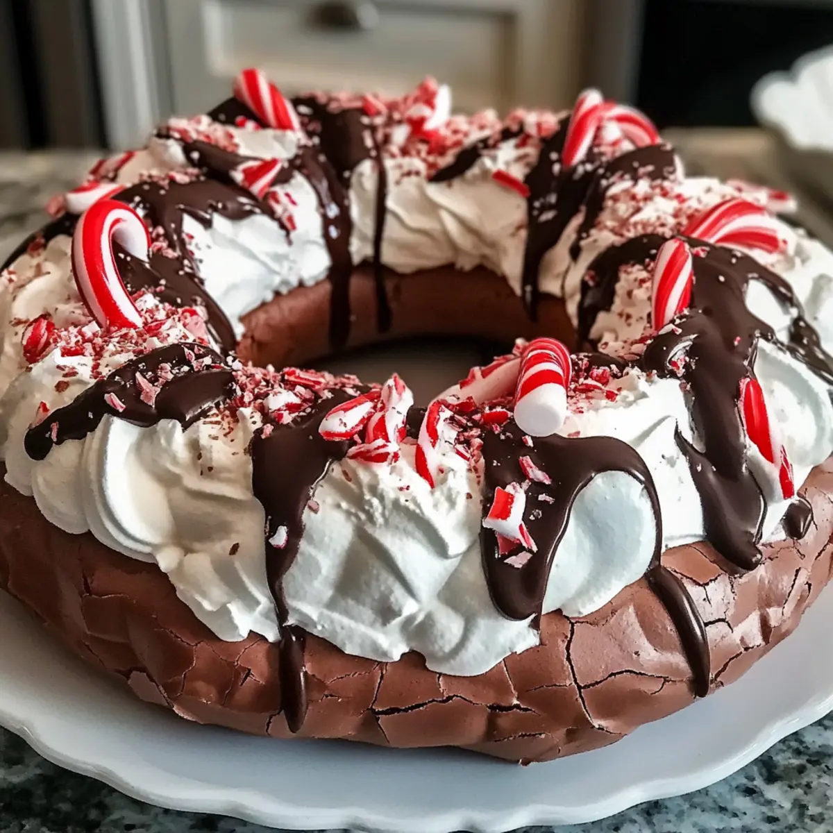 Schokoladen-Pfefferminz-Pavlova-Kranz für Feiertagsgenuss