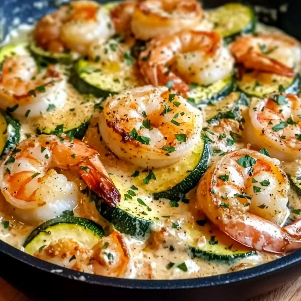 Cremige Garnelen- und Zucchini-Pfanne für Eilige