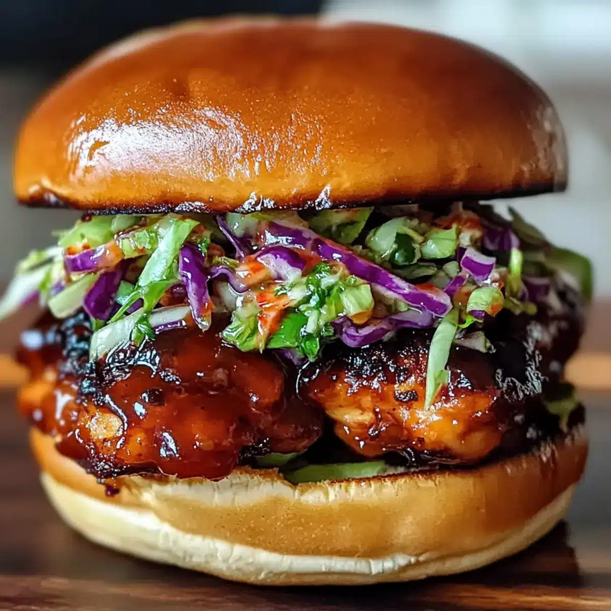 BBQ-Hühnchen-Sandwich mit Krautsalat genießen