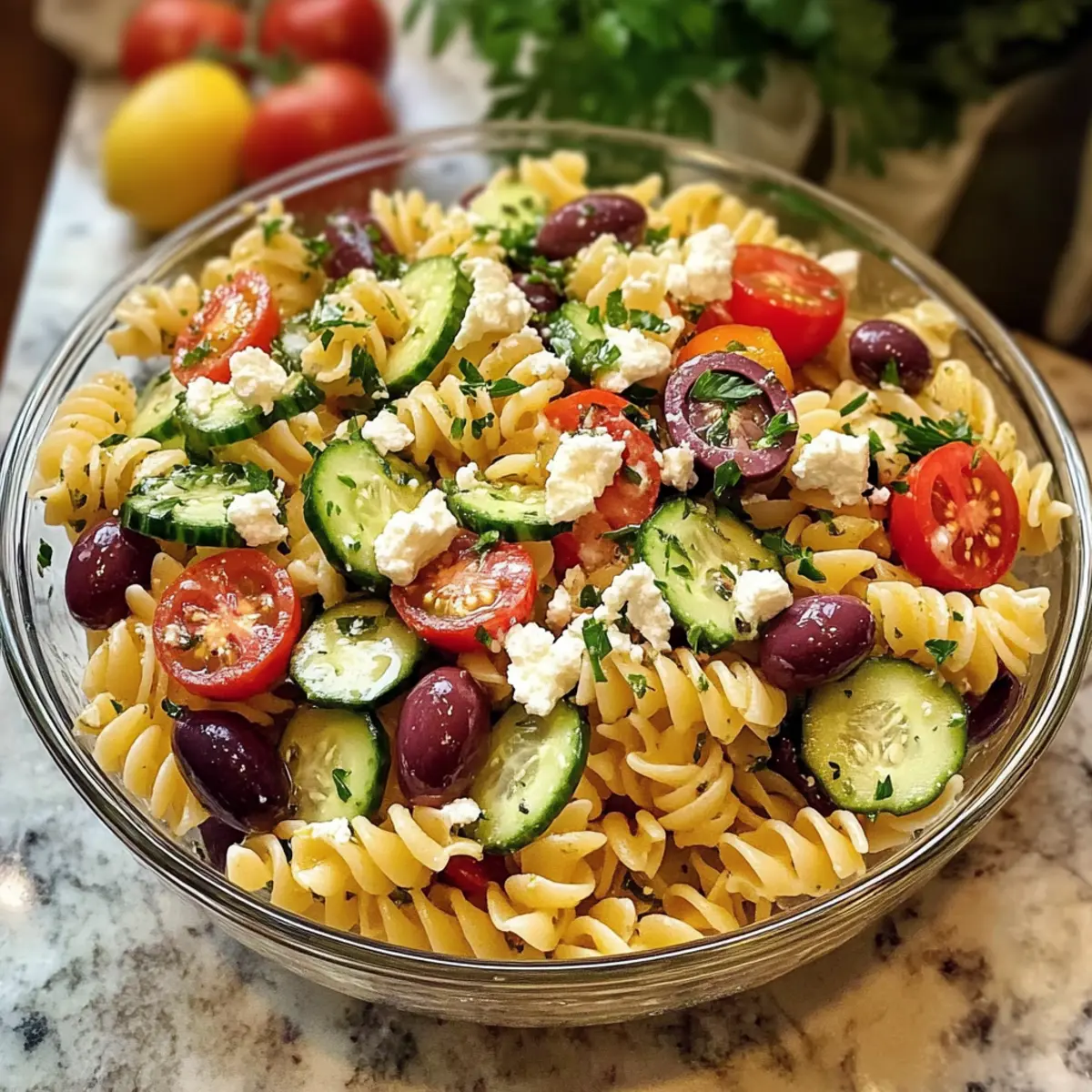 Unwiderstehlicher mediterraner Nudelsalat mit Feta