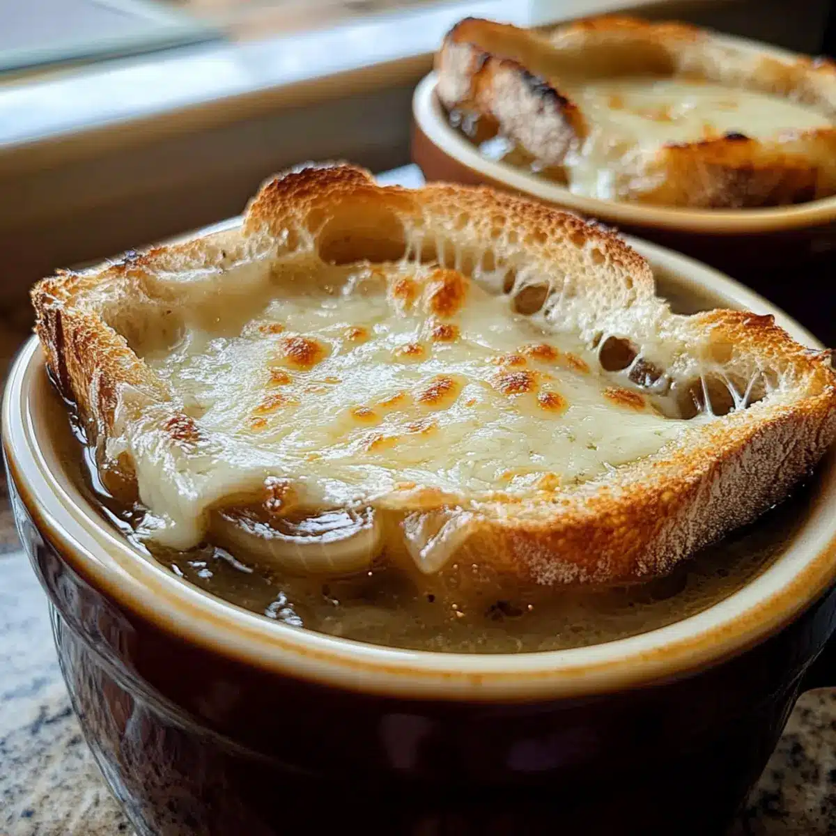 Französische Zwiebelsuppe mit Käsebaguettes für Soulfood