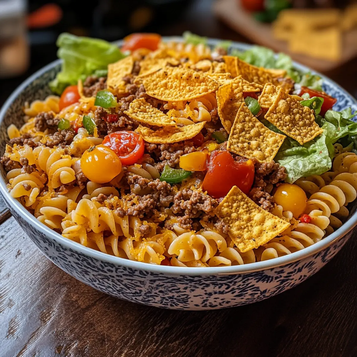 Einzigartig, dieser Doritos Locos Taco Nudel Salat vereint die Aromen von Tacos und Pasta zu einer wunderbaren Fusion. Einfach zuzubereiten, du benötigst nur ein paar grundlegende Zutaten und ein paar einfache Schritte. Vielfältig, ob als Hauptgericht oder Beilage, dieser Salat passt zu jedem Anlass und lässt sich leicht an verschiedene Diäten anpassen. Geschmacksexplosion, die Kombination aus cremiger Sauce und crunchigen Doritos sorgt für einen unvergesslichen Genuss. Und zeitgleich, du kannst viele Zutaten im Voraus vorbereiten und sie kurz vor dem Servieren zusammenmischen, was die Zubereitung zum Kinderspiel macht. Hol dir auch einige Tipps für köstliche Variationen, um den Rezeptreichtum zu erweitern!