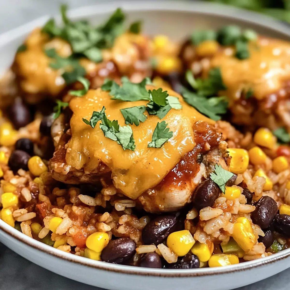 Ein-Topf BBQ Hähnchen und Reis ist ideal für die Vorbereitung und spart Ihnen wertvolle Zeit! Sie können die Hähnchenschenkel bis zu 24 Stunden vor dem Kochen marinieren, um den Geschmack zu intensivieren. Zudem können Sie die Zwiebeln und den Knoblauch im Voraus schneiden und im Kühlschrank aufbewahren. Die Mischung aus Reis, Bohnen und Mais lässt sich ebenfalls schon einen Tag vorher zubereiten und in einem luftdichten Behälter für bis zu 3 Tage kühl lagern. Wenn Sie bereit sind, das Gericht zu vollenden, erhitzen Sie einfach die vorbereiteten Zutaten in der Pfanne, fügen die Hühnerbrühe hinzu, lassen alles köcheln und topen es mit Käse. So genießen Sie ein köstliches Familienessen mit minimaler Aufregung, ohne Abstriche beim Geschmack!