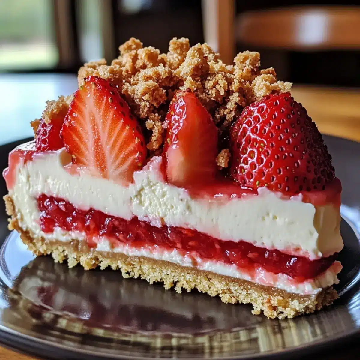 Einfache Erdbeer-Crunch-Käsekuchen für heiße Tage
