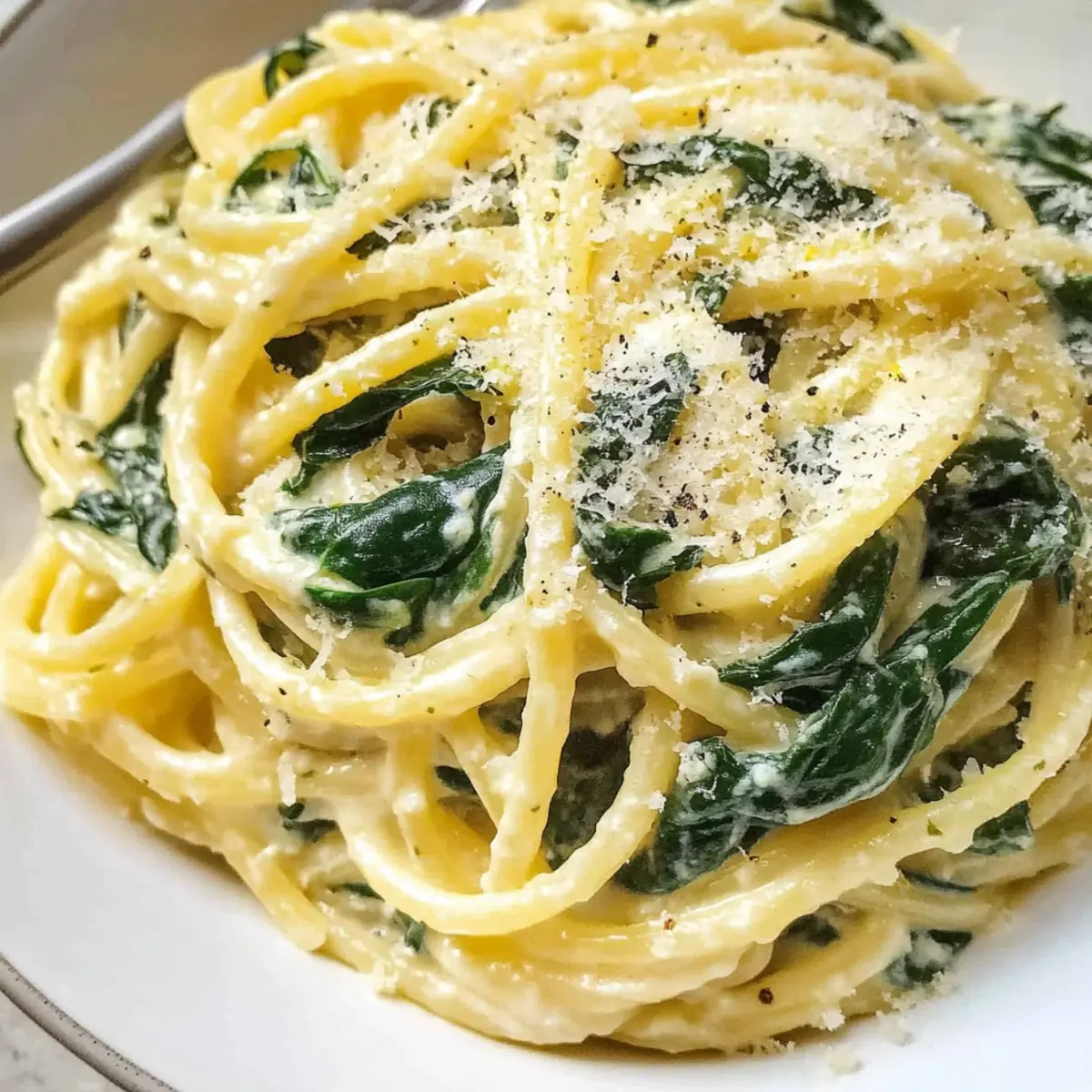 Servieren Sie die EINFACHE ZITRONEN-RICOTTA-PASTA UND SPINAT sofort. Garnieren Sie die Pasta mit zusätzlichem geriebenem Parmesan, einem Spritzer Olivenöl und optionalen Zitronenspalten. Genießen Sie dieses frisch zubereitete, sättigende Gericht, das Aromensicherheit und gesunde Zutaten vereint.