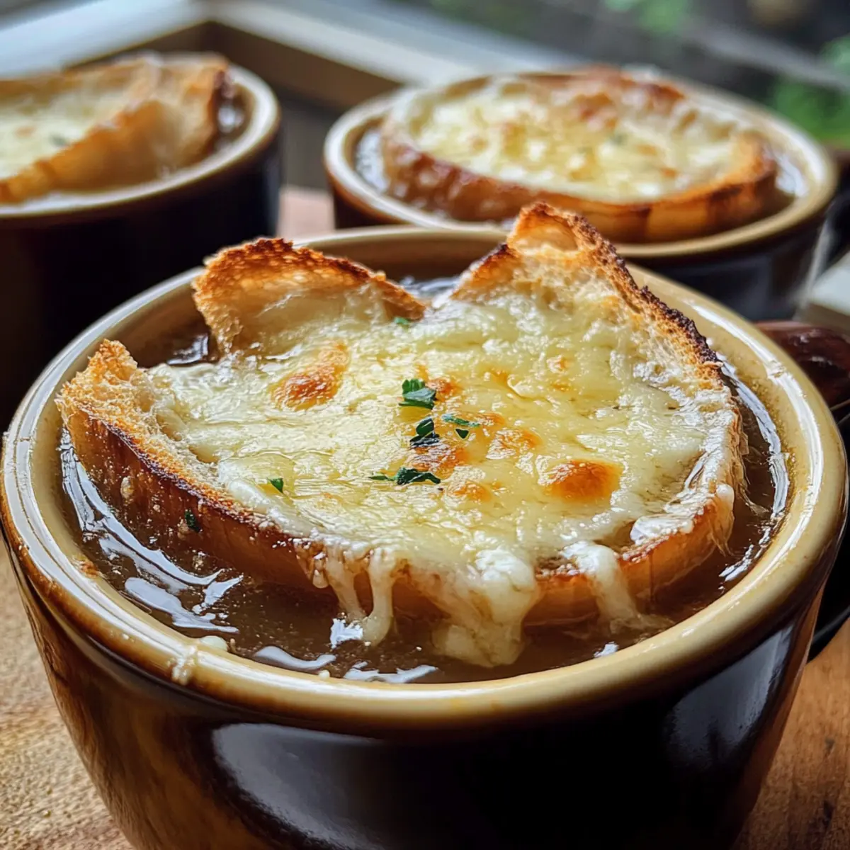 Reichhaltiger Geschmack: Die Kombination aus karamellisierten Zwiebeln und hochwertigem Gruyère-Käse sorgt für einen unvergesslichen Geschmack, der jeden Löffel zu einem Erlebnis macht.