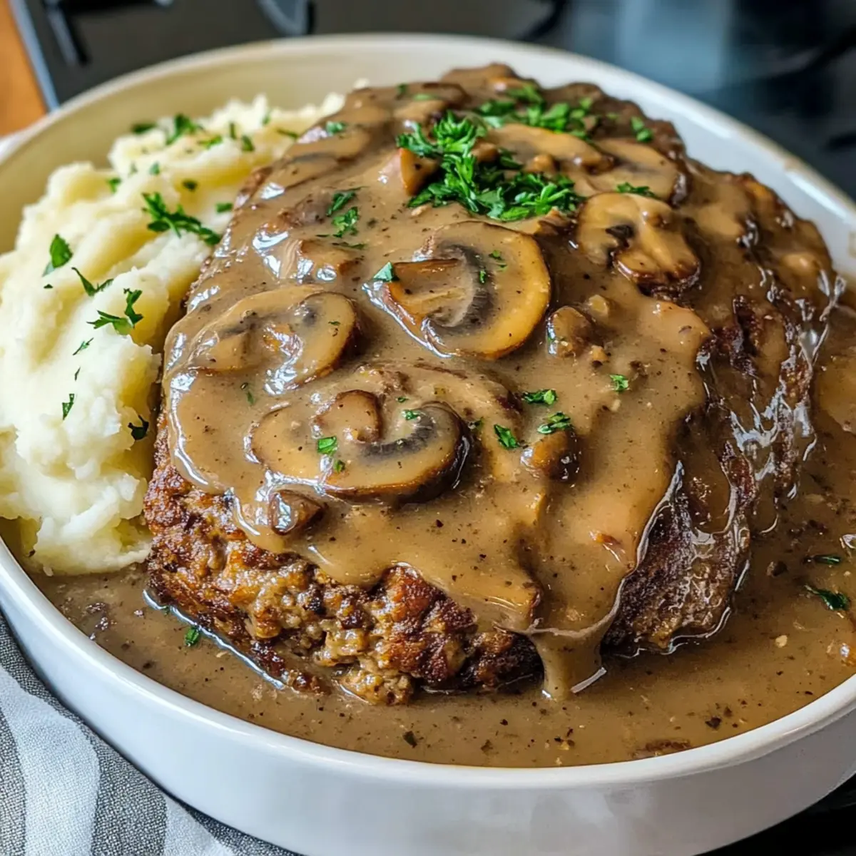 Herzhafter Geschmack, der den Abend rettet: Die Kombination aus Fleisch und der samtigen Champignonsoße sorgt für ein unvergleichliches Geschmackserlebnis.