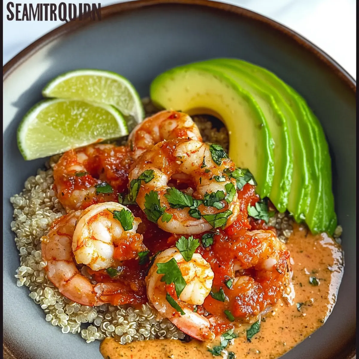 Um das Gericht zu servieren, verteilen Sie die Koriander-Limetten-Quinoa gleichmäßig auf Tellern. Löffeln Sie die Garnelen mit frischer Tomatensauce darauf und garnieren Sie mit gewürfelter Avocado. Servieren Sie das Gericht mit Limettenvierteln an der Seite, um den Geschmack beim Essen zu intensivieren.