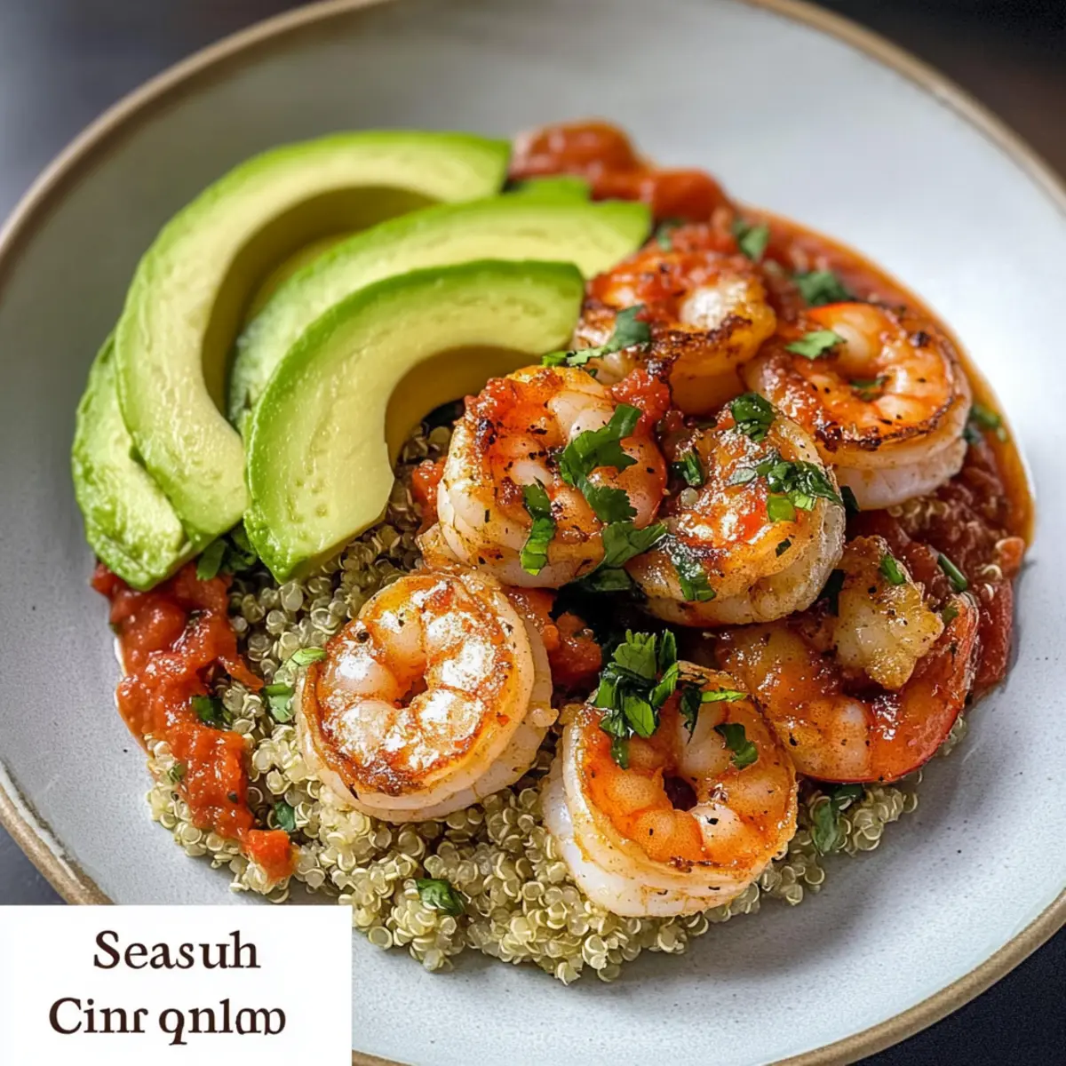 - Um das Gericht zu servieren, verteilen Sie die Koriander-Limetten-Quinoa gleichmäßig auf Tellern und löffeln die Garnelen mit frischer Tomatensauce darauf.