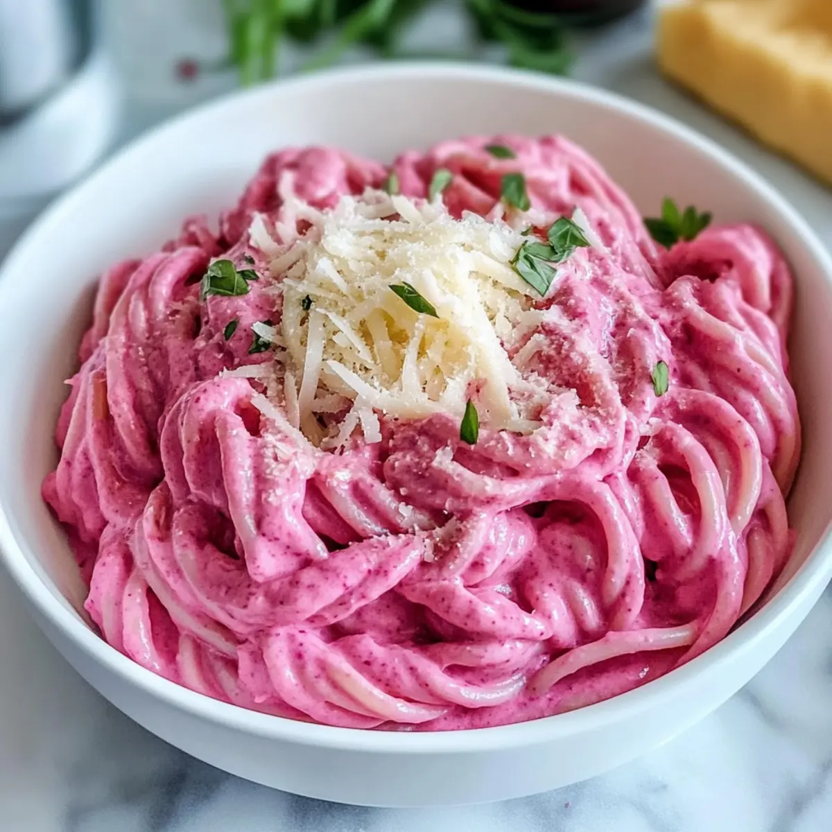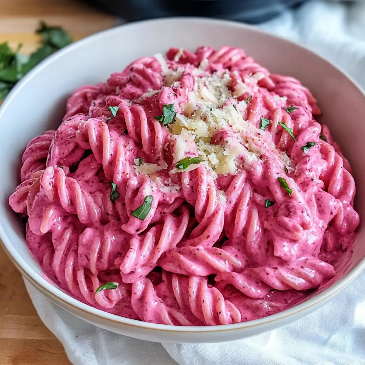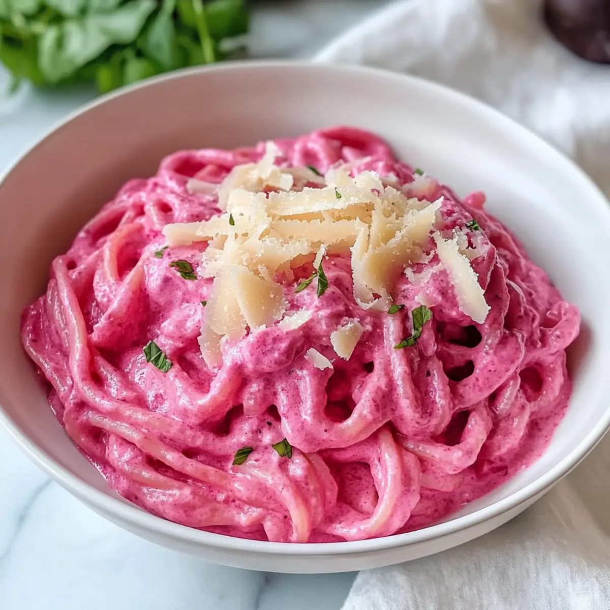 Gesunde vegane pinke Pasta mit Rote-Bete-Sauce