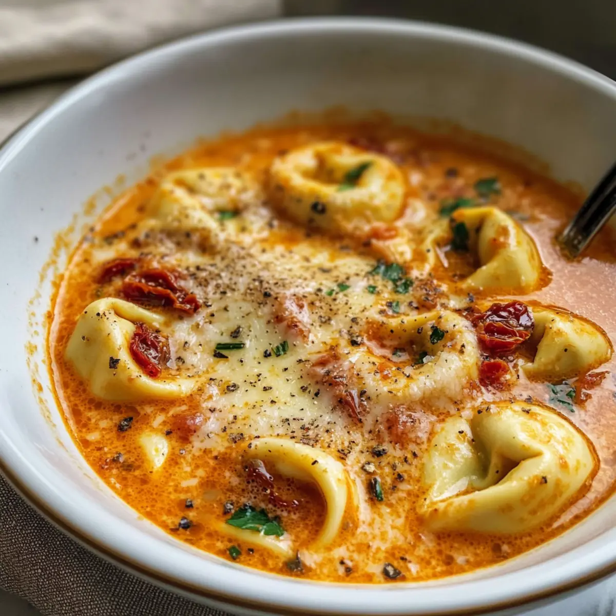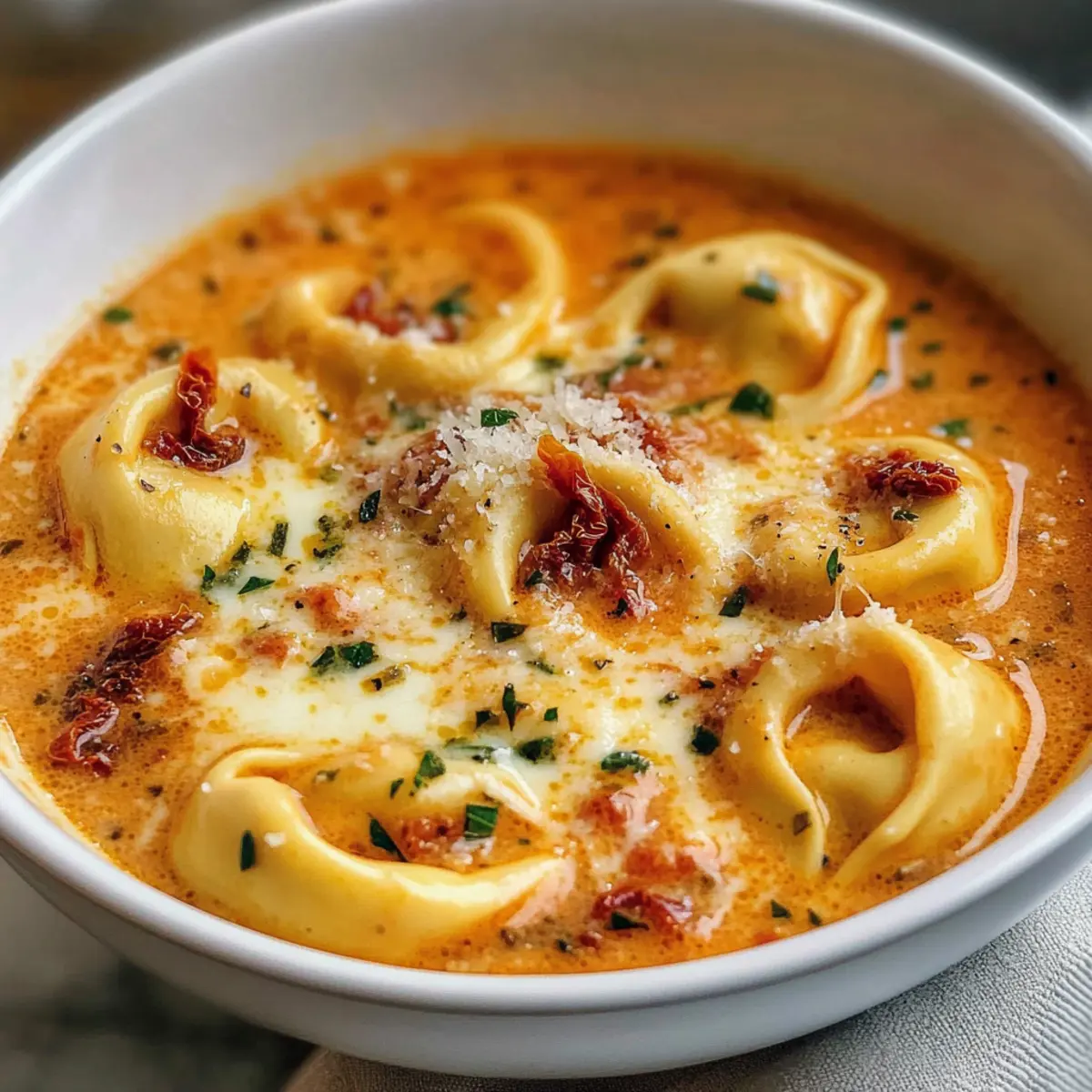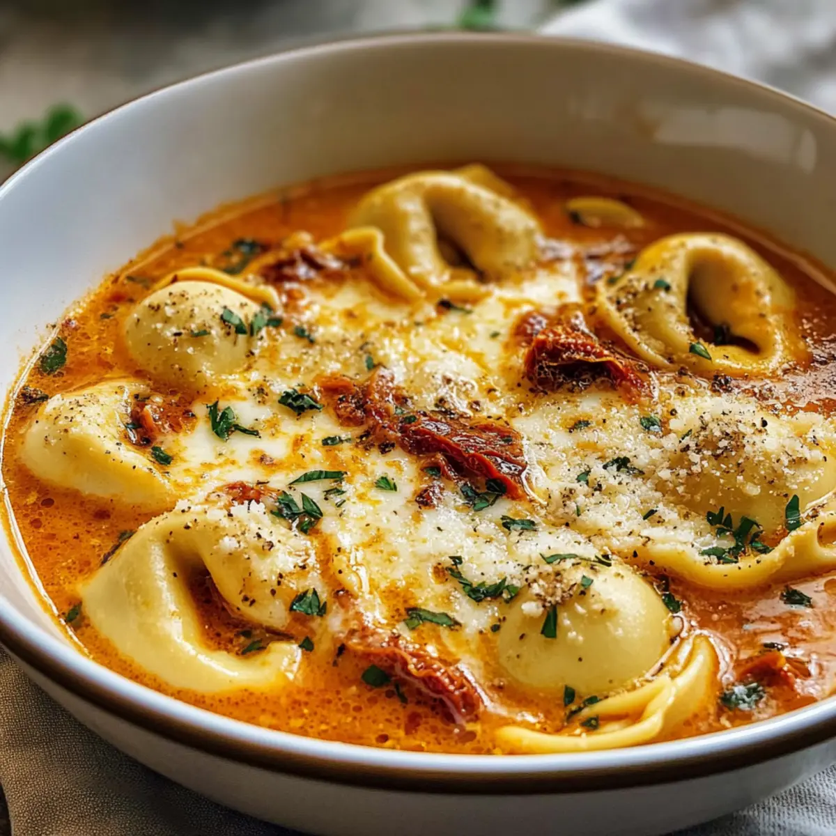 Käse-Tomaten-Tortellini-Suppe für die Seele