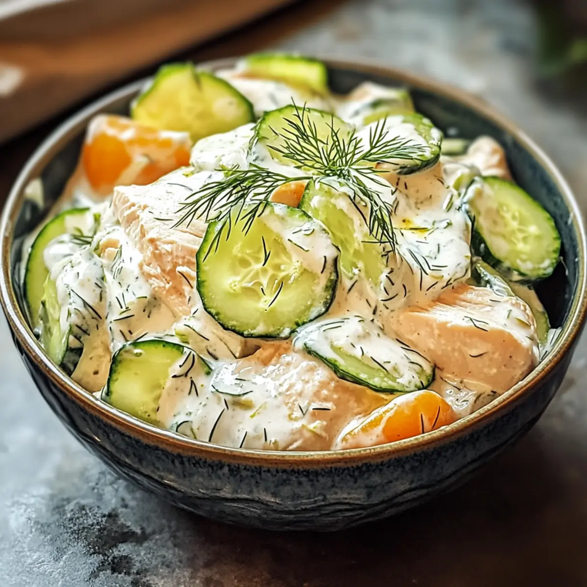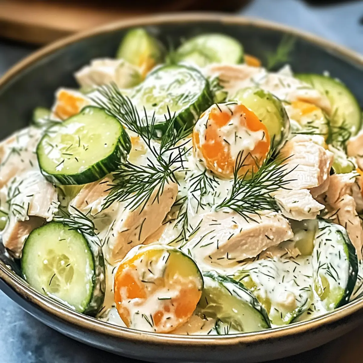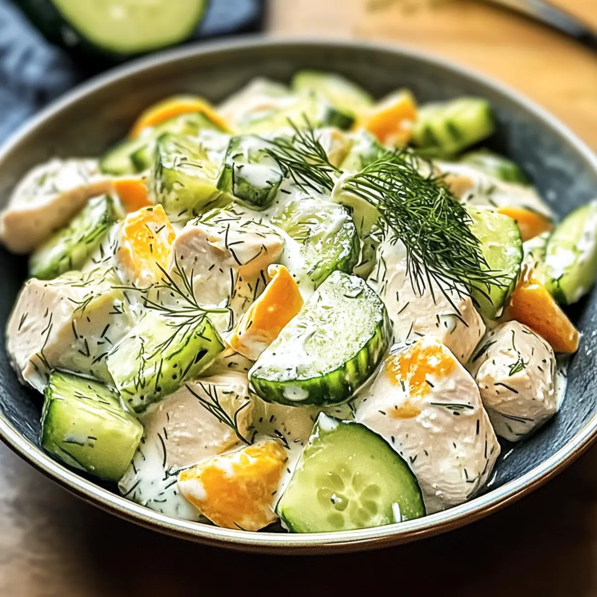 Erfrischend leicht: An heißen Sommertagen ist dieser Kaltes Gurken- und Hähnchensalat eine wahre Erleichterung!