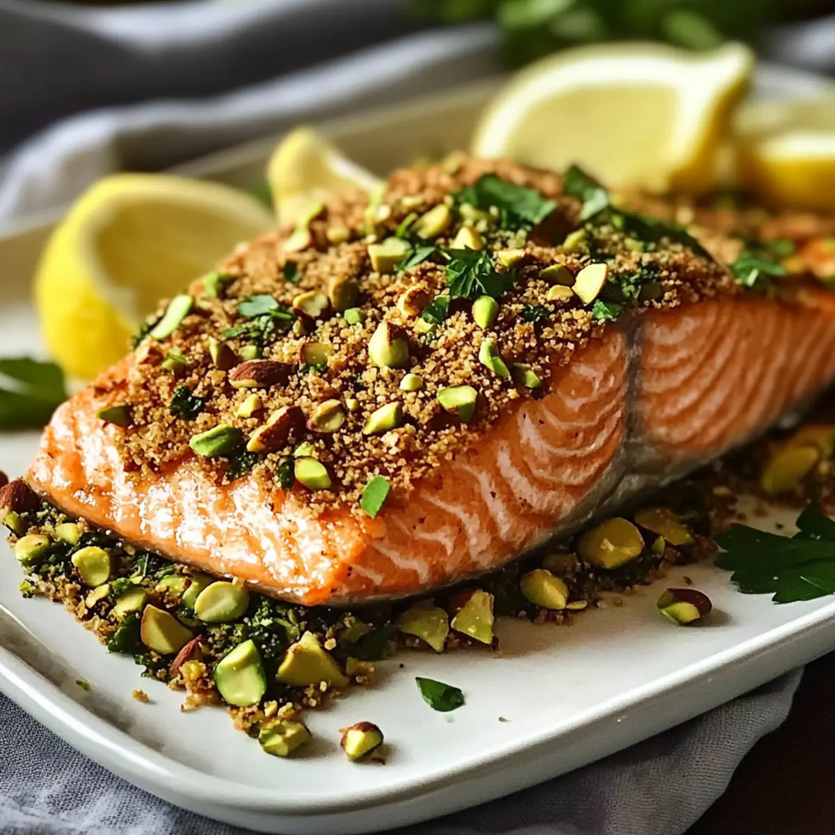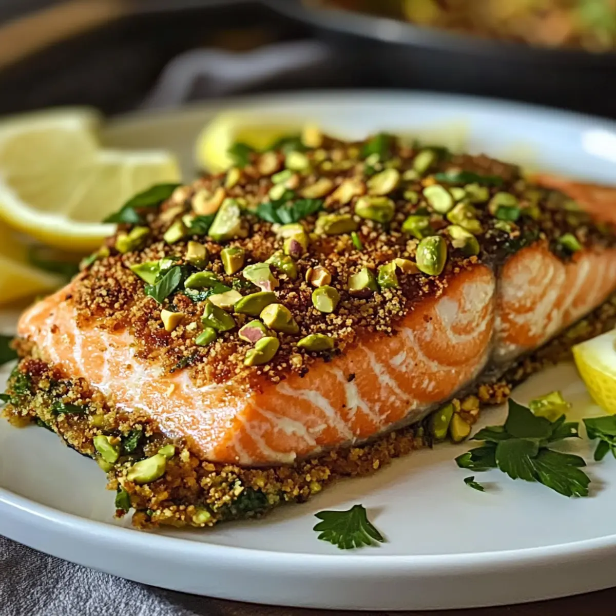 Aromatische Explosion: Die Kombination aus frischem Lachs und der knackigen Pistazienkruste bringt Geschmack und Textur in Einklang. Es ist eine köstliche Bereicherung für jeden Esstisch.