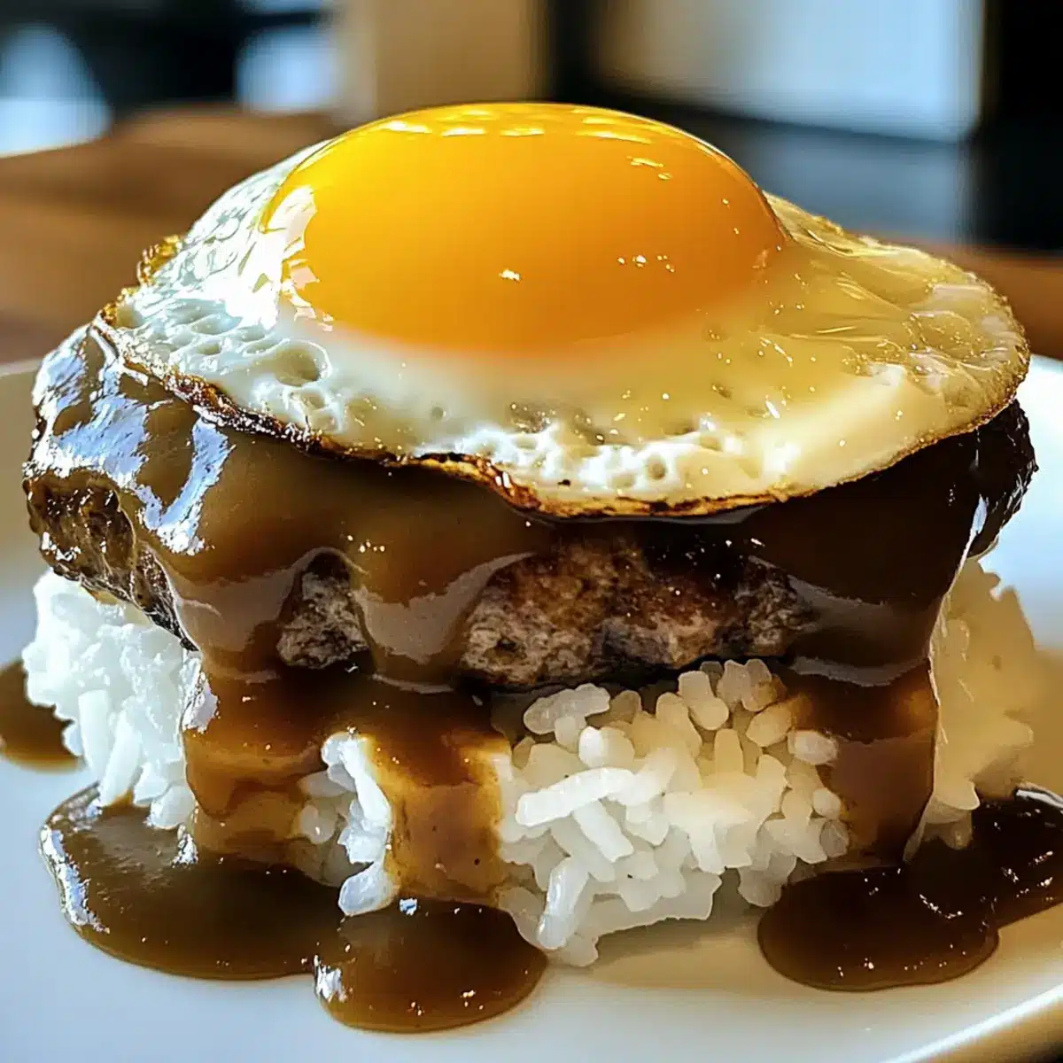 Serviere warmen Reis auf tiefen Tellern und platziere jeweils ein Burger-Pattie darauf. Über das Pattie eine großzügige Portion der reichhaltigen Soße geben und mit einem gebratenen Ei krönen. Dein Loco Moco ist nun bereit, genossen zu werden!