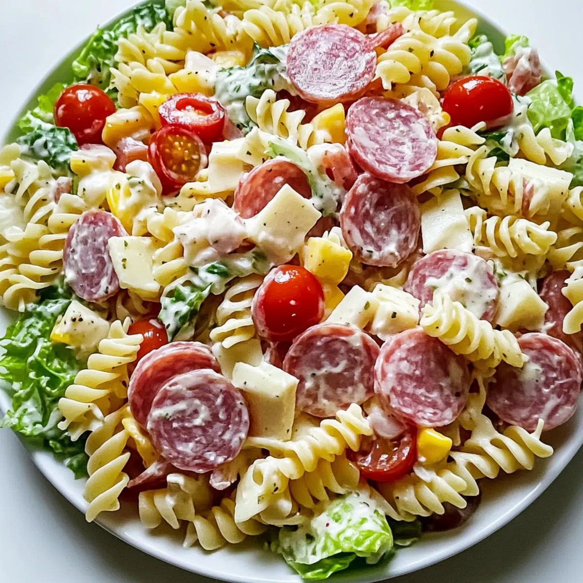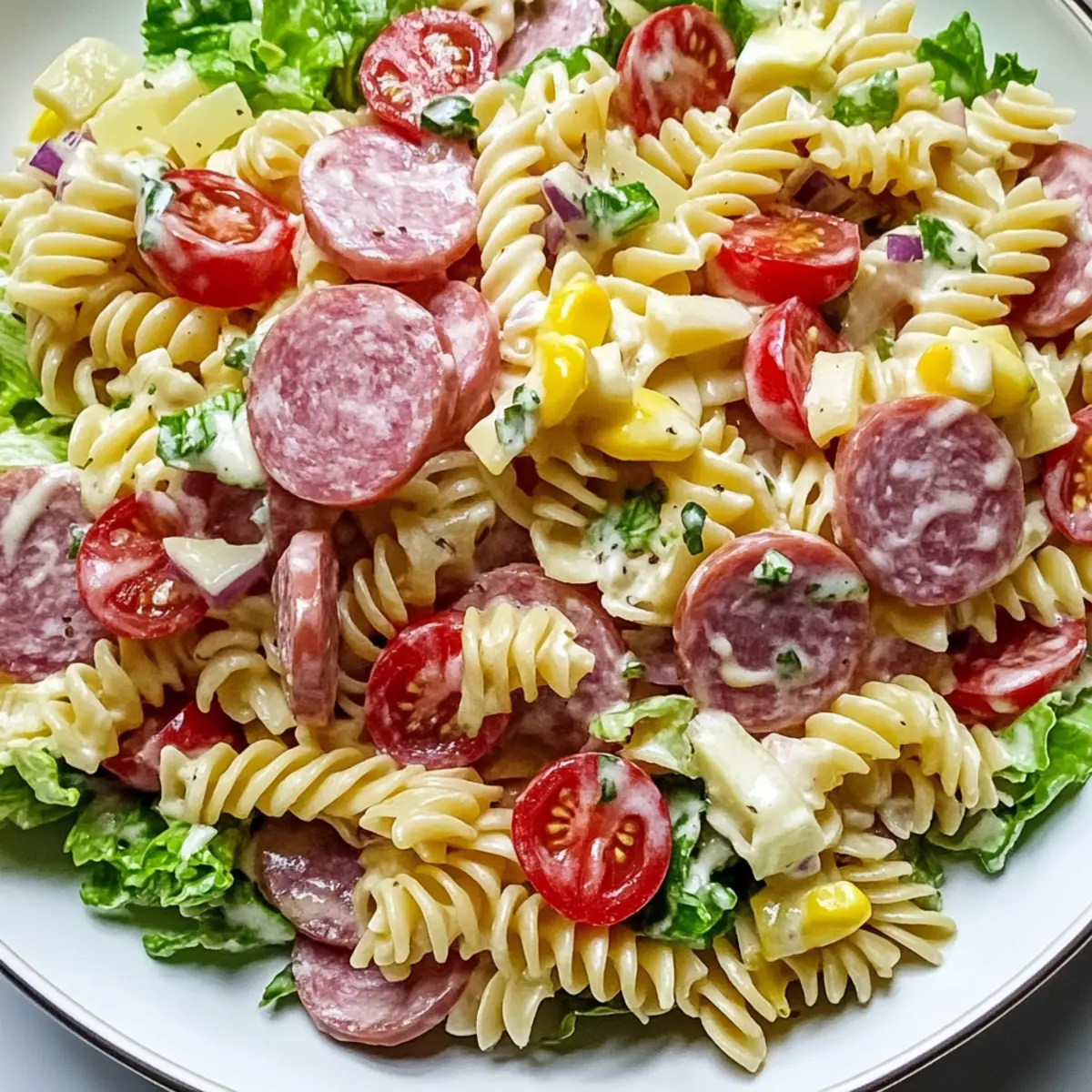 Herzhafter Geschmack: Die Kombination aus salzigen Wurstwaren, frischen Gemüsen und dem cremigen Dressing sorgt für ein Geschmacksfeuerwerk, das jeden begeistert.