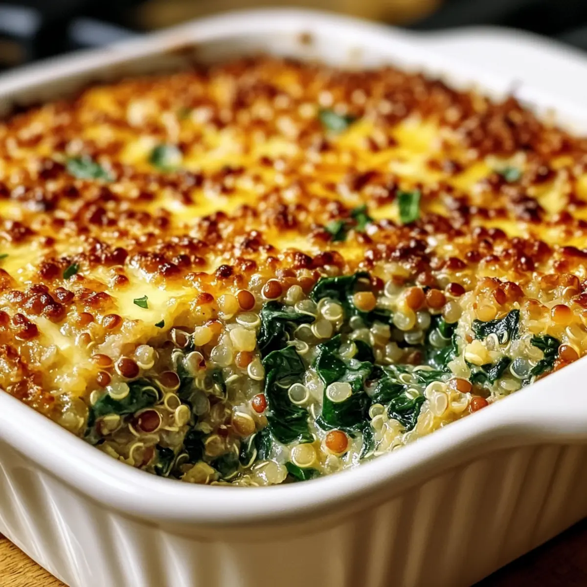Vielseitigkeit: Der Quinoa & Linsen Spinat-Auflauf kann nach Belieben angepasst werden; probiere beispielsweise andere Gemüsesorten wie Pilze oder Paprika für eine neue Geschmacksrichtung.