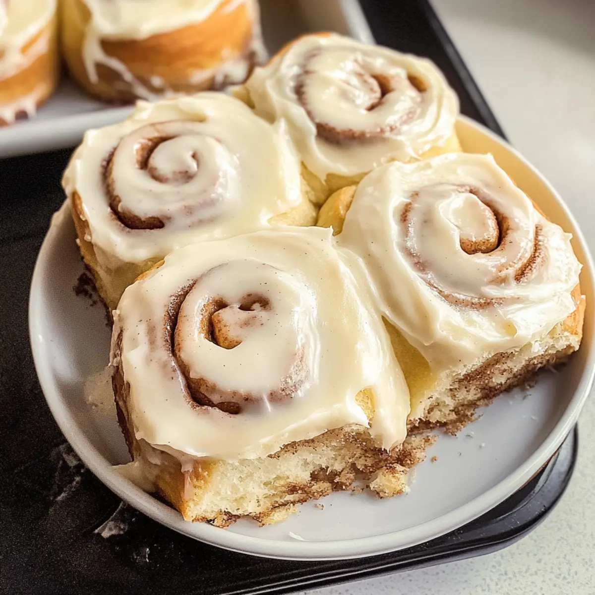 - Nach dem Backen das Frosting gleichmäßig über die Zimtschnecken verteilen.