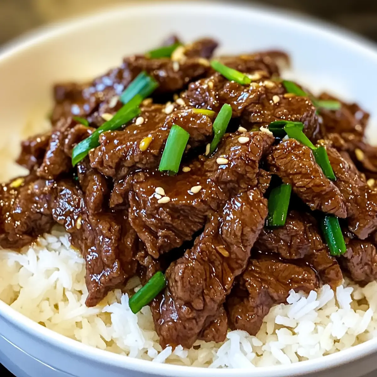 Sesamsamen: Eine Prise gerösteter Sesamsamen als Garnitur auf dem Rindfleisch sorgt für zusätzlichen Crunch. Dieser kleine Akzent hebt die Textur des Gerichts hervor und verleiht ihm einen nussigen Geschmack.