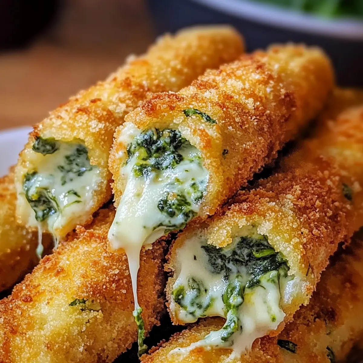 - Mozzarella String Cheese Sticks – Der Star des Rezepts; sorge für eine vollständige Umhüllung mit der Spinatmischung für cremige Füllung.