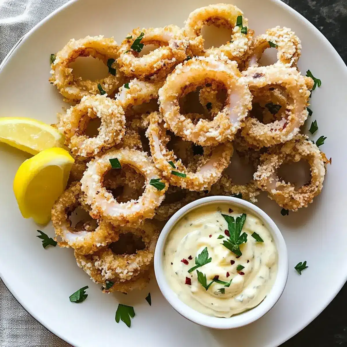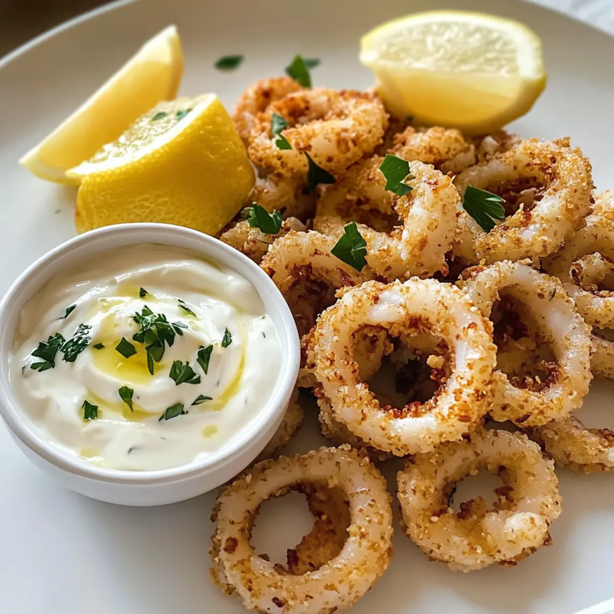 Gesunde Option: Im Vergleich zu herkömmlich frittierten Varianten ist dieser Zitronen-Knoblauch-Tintenfisch leichter und gesünder, und die Aioli bietet gesunde Fette ohne Kompromisse beim Geschmack.