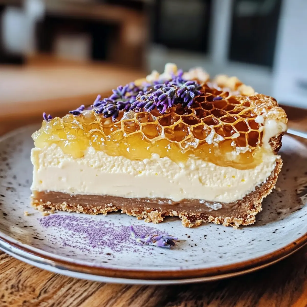 - Kühle im Kühlschrank für mindestens 4 Stunden und garniere vor dem Servieren mit Honigwabe.